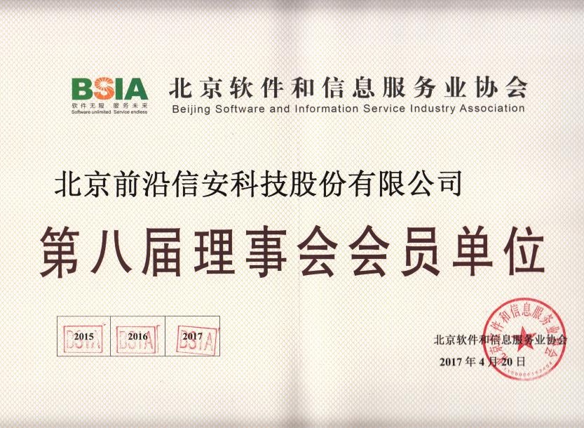 北京軟件和信息服務業協會”軟件產品證書 “--前沿數據防泄漏系統